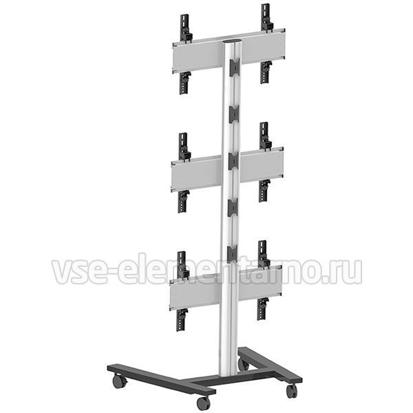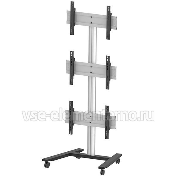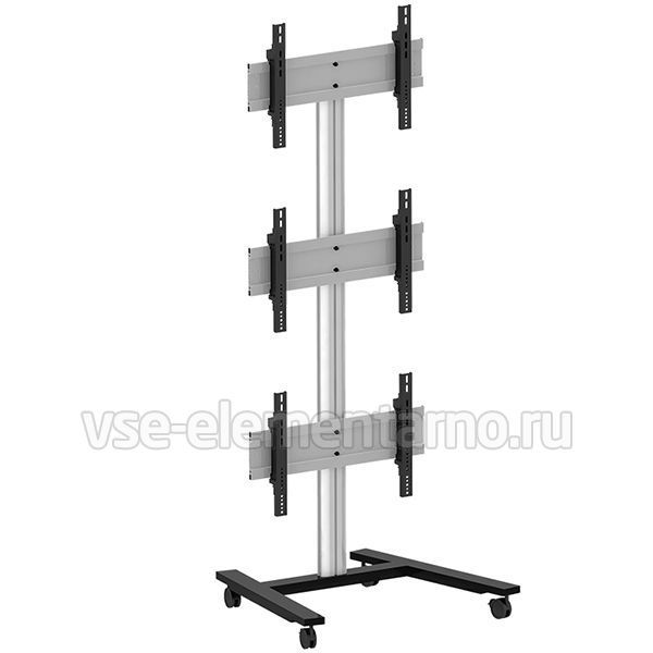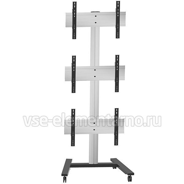 Мобильная стойка для видеостены 2MVESA Panorama 300 для 3 панелей (3 в высоту) с диагональю 30-55" и весом до 120 кг. Крепления поддерживают VESA 600x400 и могут регулироваться по высоте на 15 мм и в глубину на 15 мм. Такая точная регулировка позволяет собрать видеостену без зазоров между экранами и получить целостное изображение.