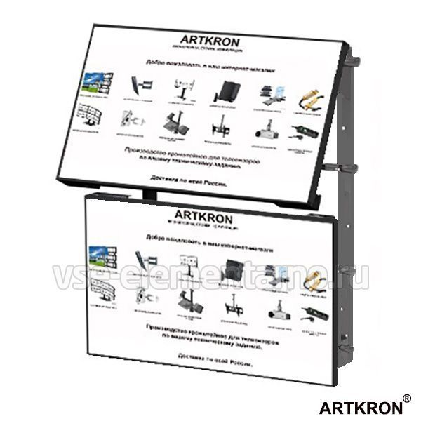 Настенный кронштейн откидного типа для монтажа видеостены из 2 мониторов до 55 дюймов один над другим.