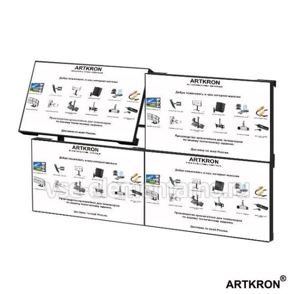 Крепление ARTKRON VWBW-F22 для построения видеостены из 4 панелей с возможностью точной регулировки позволяет создать ровную плоскость из панелей даже на неровном основании. Каркас обеспечивает надежную фиксацию и безопасное крепление четырех мониторов размером до 55 дюймов. Кронштейны каркаса обеспечивают точную регулировку высоты, глубины и наклона для выравнивания всех дисплеев видеостены в одну плоскость. Возможность регулировки наклона дисплея +2°~-2°.