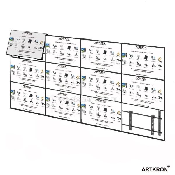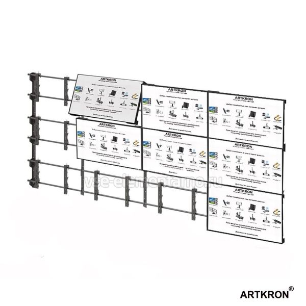 Крепление ARTKRON VWBW-F43 для построения видеостены из 12 панелей с возможностью точной регулировки позволяет создать ровную плоскость из панелей даже на неровном основании.