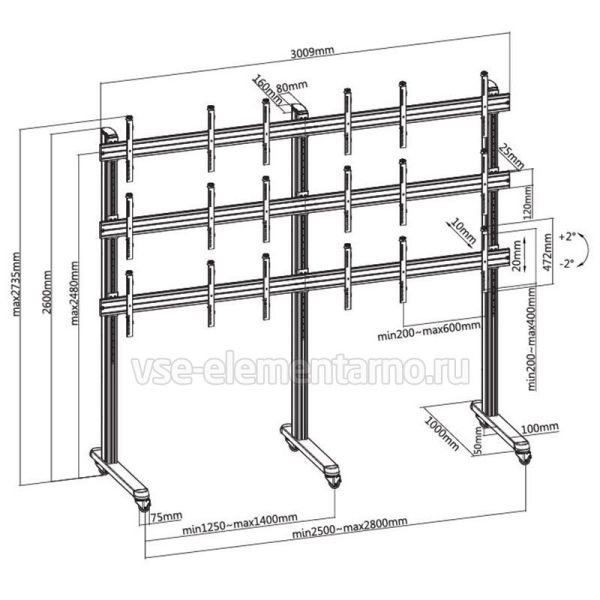 Мобильная стойка для монтажа видеостены из 9 мониторов.