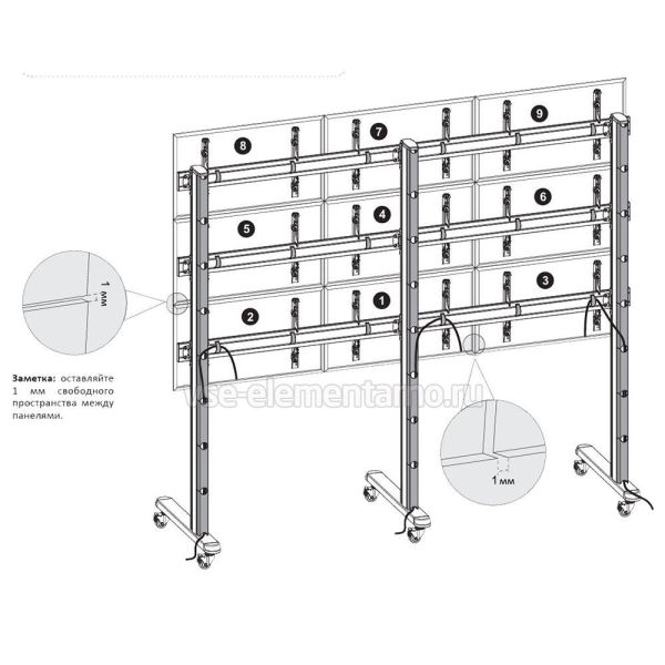 Фиксация панелей на стойке Wize Pro VWM33 осуществляется с помощью защелкивающегося механизма.