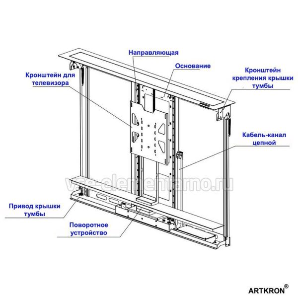 Механизм лифта ARTKRON Auto RS-60 спроектирован с использованием самых передовых технологий в подъемных механизмах встраиваемых в мебель, что обеспечивает стабильный и плавный подъем телевизора с диагональю от 50” до 60”.
