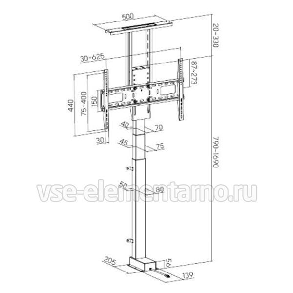 Сам ТВ монтируется на механизм при помощи адаптера со стандартами крепления VESA 200x200, 200x300, 300x200, 200x400, 400x200, 300x300, 300x400, 400x300, 600x200, 350x350, 400x400, 600x300, 400x600, 600x400