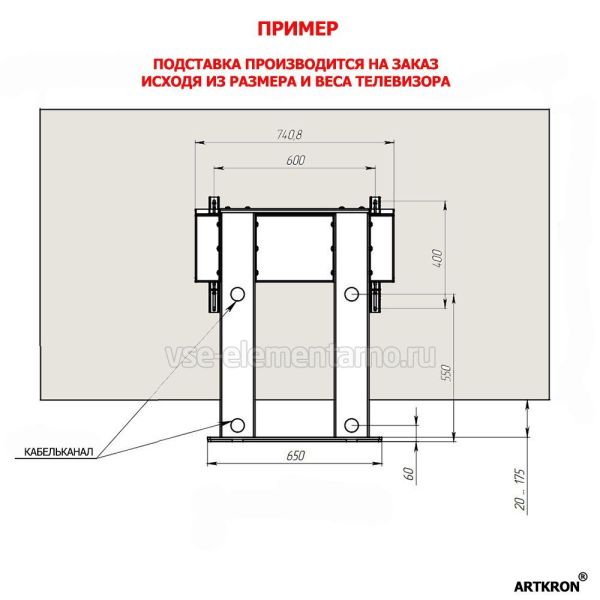 Размеры и совместимость: подставка изготавливается под заказ под конкретную модель телевизора.