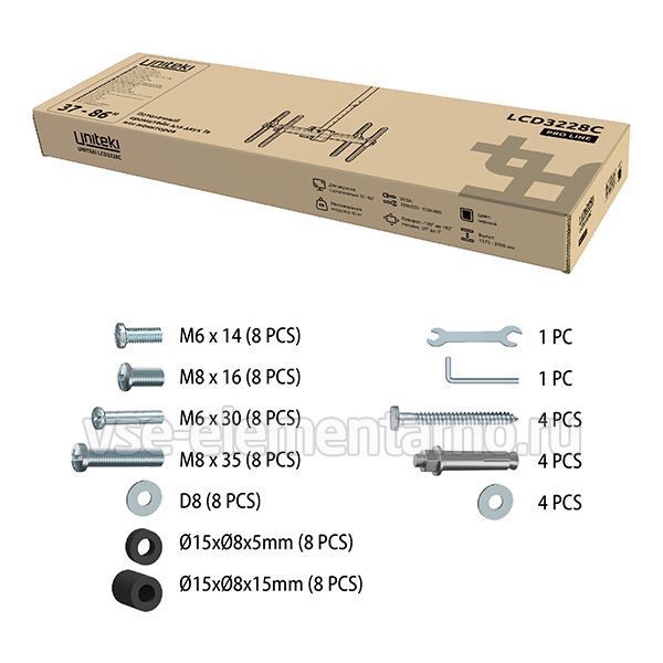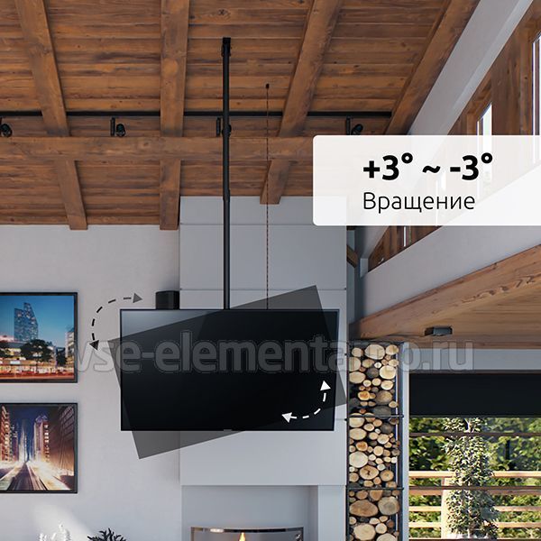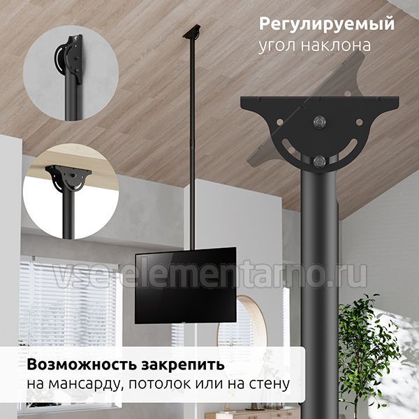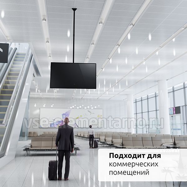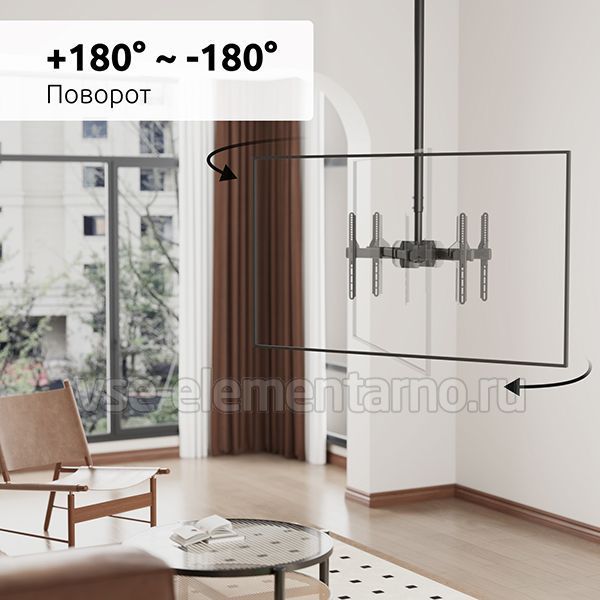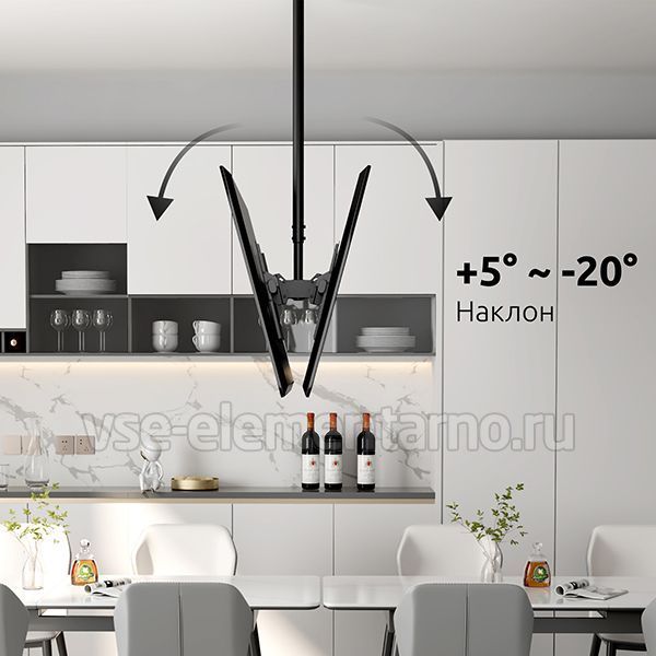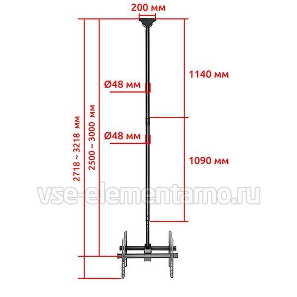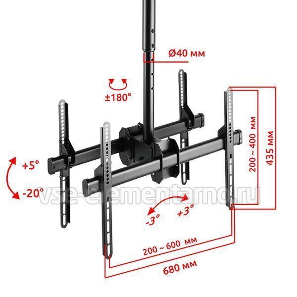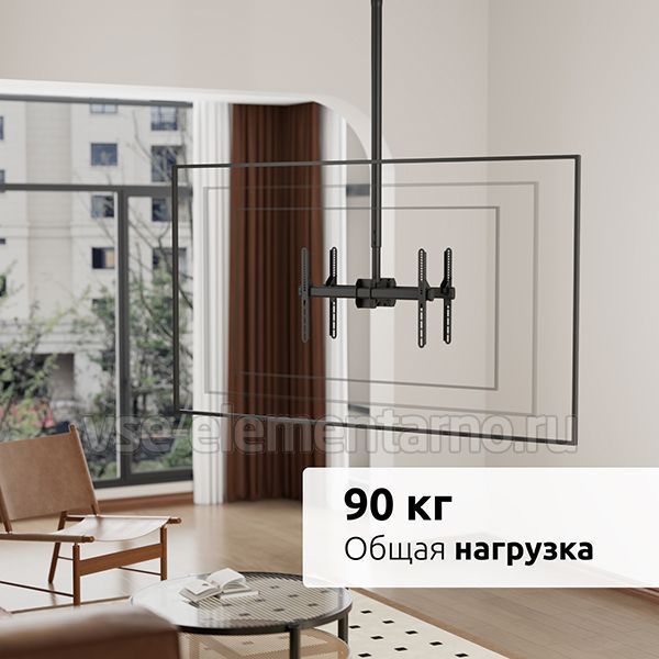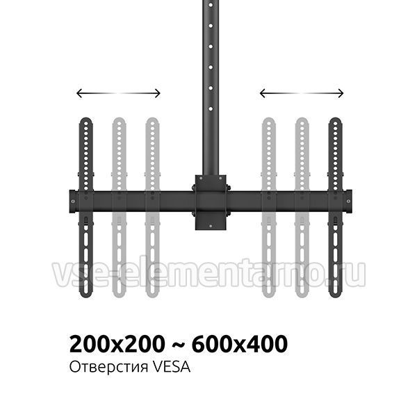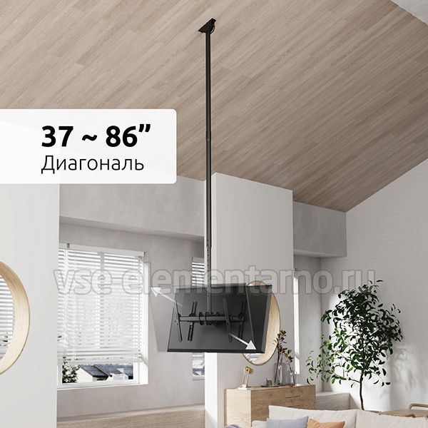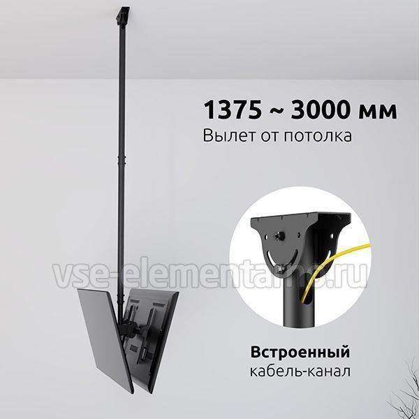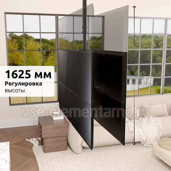 Телескопический двухсторонний потолочный поворотно-наклонный кронштейн для двух телевизоров и мониторов с диагональю от 37 до 86 дюймов весом до 90 кг.