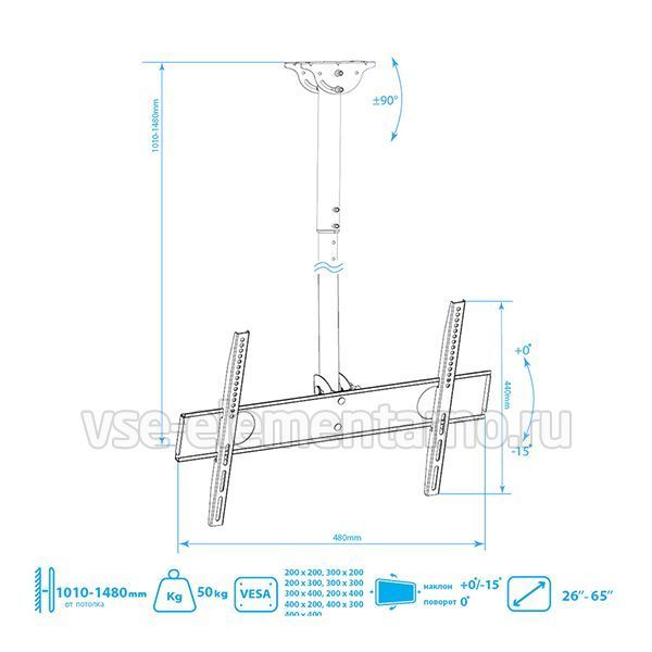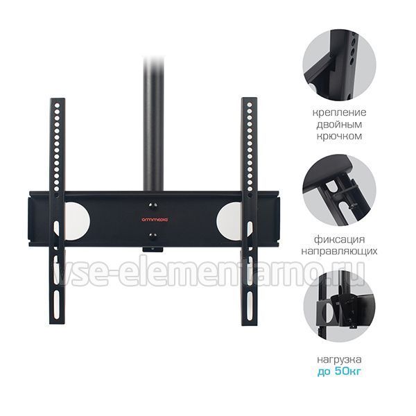 Телескопический потолочный наклонный кронштейн для телевизоров и мониторов с диагональю от 26 до 65 дюймов.