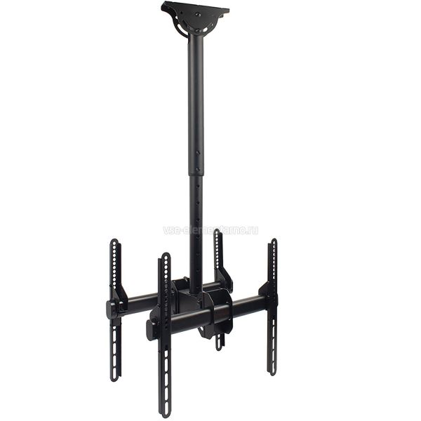 Телескопический двухсторонний потолочный наклонно-поворотный кронштейн в черном цвете для телевизоров и мониторов с диагональю от 26 до 65 дюймов весом до 90 кг.