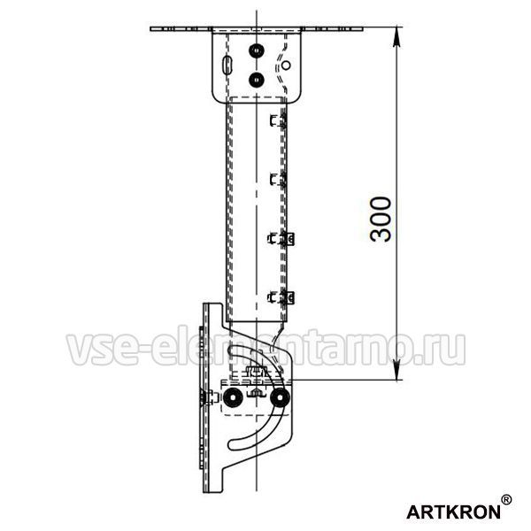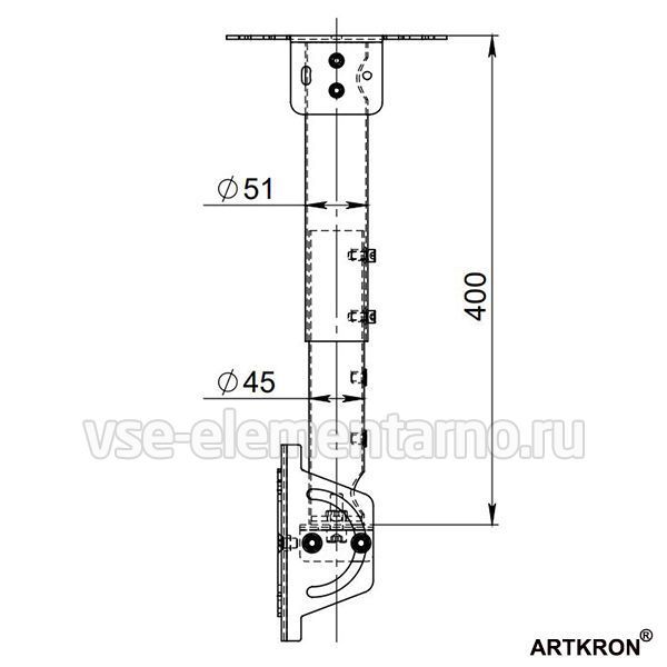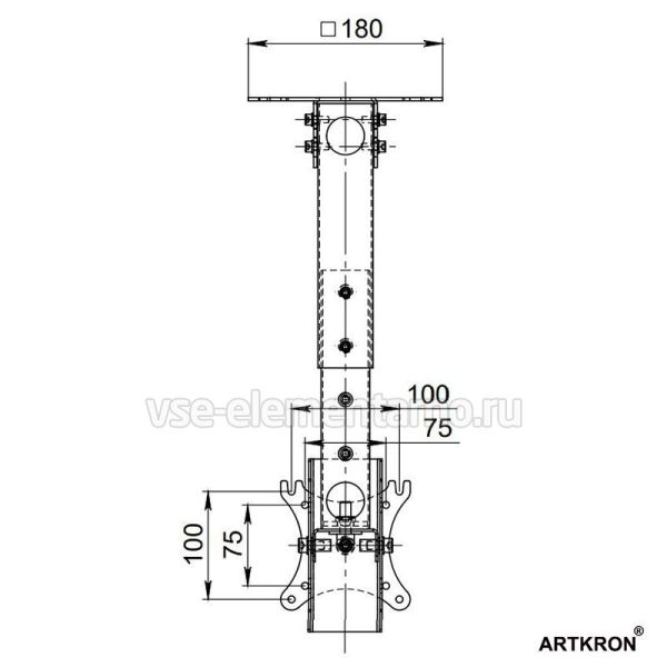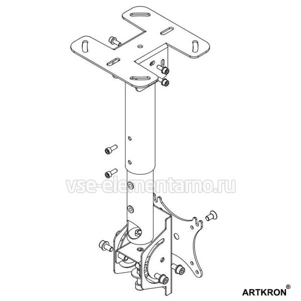 Телескопический потолочный кронштейн ARTKRON P1-10, позволяет установить телевизор с диагональю до 32 дюймов на потолке с возможностью наклона до 90 градусов (параллельно полу).