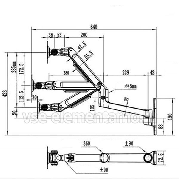 - Высота стойки регулируется, крепления для мониторов регулируются за счет газовой пружины, встроенной в кронштейны