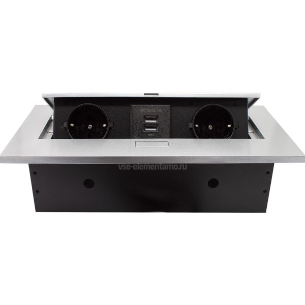 Полуавтоматический выдвижной розеточный блок (220Vx2, USB-Ax2) серии 226, встраиваемый в стол.