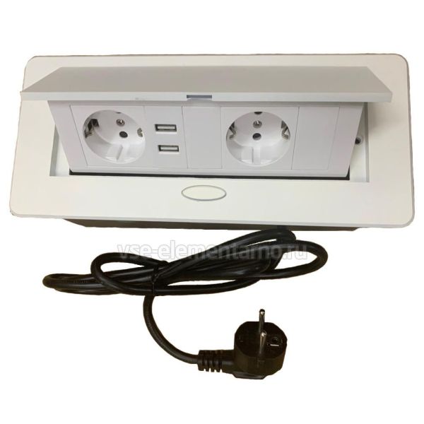 Полуавтоматический выдвижной розеточный блок с закругленными углами (220Vx2, USB-Ax2) серии 226, встраиваемый в стол.