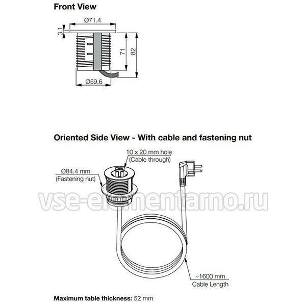 Kondator 935-PM60W – удобная встраиваемая розетка с кабель-каналом, позволяющая элегантно организовать провода на рабочем месте. Устройство не займет много места благодаря небольшим габаритам (72х72х82 мм). Диаметр выреза в столе: 60 мм. Длина кабеля питания: 1500 мм. Цвет: белый.