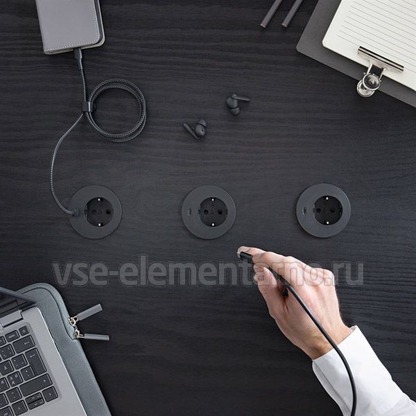 Диаметр выреза в столе: 60 мм. Длина кабеля питания: 1250 мм. Цвет: чёрный.