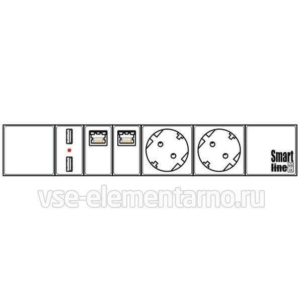 Элегантная модель (220Vx2, RJ 45x2, USBx2) серии Smartline Desk, устанавливаемая на край рабочего стола.